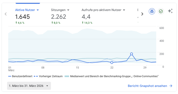 - Unique Visitors (laut Google Analytics): 1645